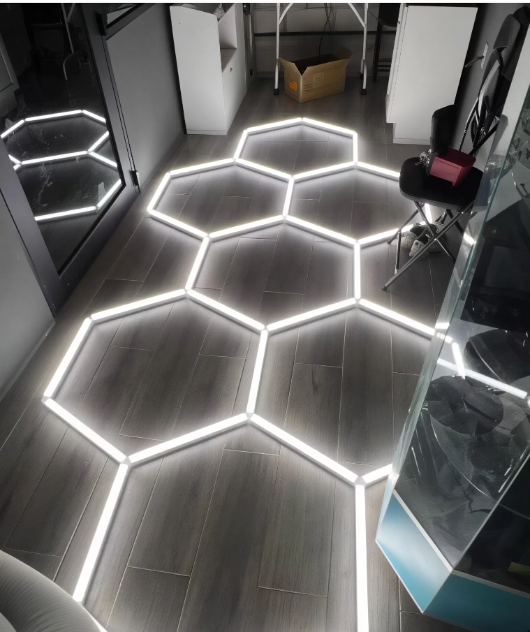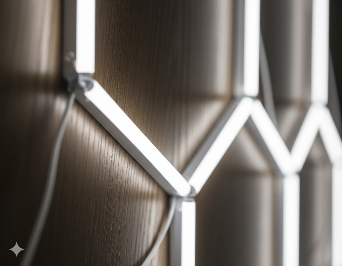 Nous concevons des plafonniers LED hexagonaux aux géométries précises, pensés pour structurer les espaces et sublimer les intérieurs contemporains.